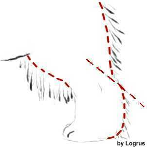 Передние конечности, когда мы смотрим фронтально, являются идеальным продолжением плеча и руки (верхней части лапы). Состригите торчащие волосы по бокам - особенно на локтях! Добейтесь плавного перехода линий от плеча до верхней части лапы.