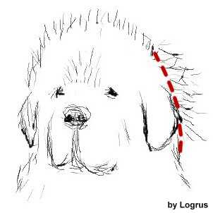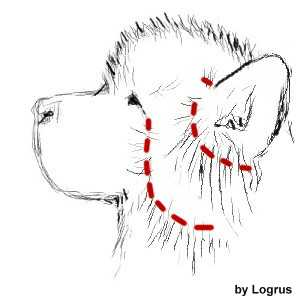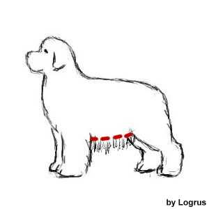 Шерсть на груди, как правило, имеет повышенную лохматость ее нужно немного убрать. В частности, чуть ниже горла мы должны улучшить точно. Если шерсть под грудной клеткой очень длинная, это создает впечатление коротколапости ньюфа, ее тоже следует удалить. Лишнюю шерсть лучше обрезать, создавая мягкую кривую. Потом обрезать лишнюю шерсть по бокам шеи вниз от ушей, делая плавный переход к груди.