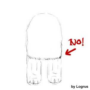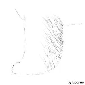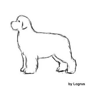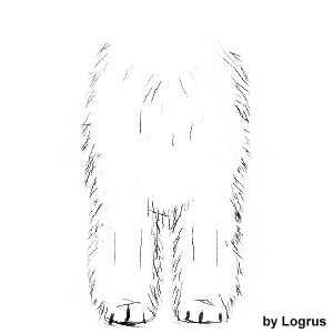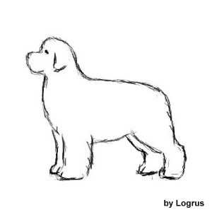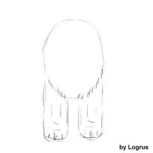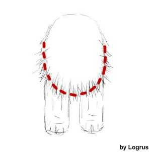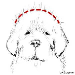 Теперь, станьте прямо перед собакой. Форма должна быть закругленной по бокам, так что бы шерсть плавно переходила к нижней линии, как показано на рисунке.