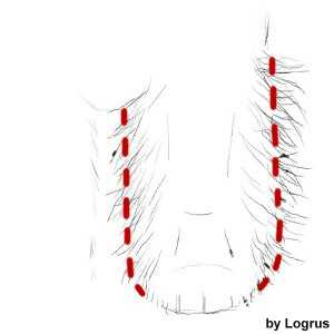 Теперь, под ухом. Вырезать жирные волоски под ухом, закругляем волосы на щеках по форме головы, а так же убираем мягкие волосы, растущие за ушами, сделав плавный переход к шее.