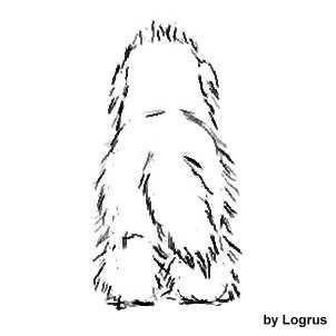 Начинаем сначала вычесывать пуходеркой, а затем расчесывать всю собаку гребнем. О колтунах говорить не будем, надеемся их нет у выставочных собак. Начать следует с задних конечностей. Продвигаться надо снизу вверх, к хвосту, придерживая шерсть рукой и вычесывать движениями сверху вниз из под руки как бы слоями (по не многу) короткими движениями. Затем, таким же образом вторую лапу и между лапами (очень осторожно). Следующим расчесываем хвост, от кончика к спине, спину от крупа к шее, бока от живота к спине. Аккуратно расчешите подмышки передних лап, не повредите пУчки лап, передние лапы, шею, голову в области ушей и саму голову. Так же подстригите когти и почистите уши.Перед стрижкой: