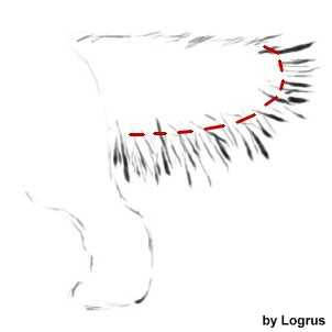 Начнем с ушей. Снимаем лишние волосы с ушей так, что бы они (уши) выглядели одним целым с головой. Аккуратно ровняем края уха, создавая плавные лини.